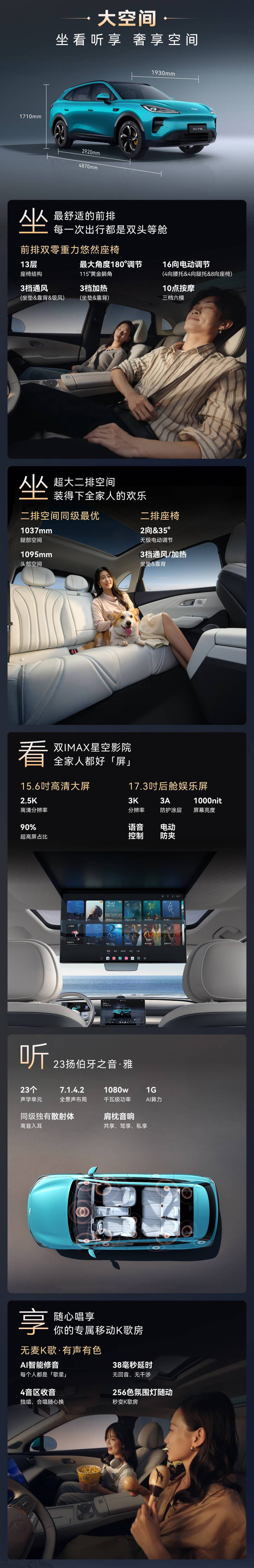 但更有价值的是“体验参数”的转化。轴距2920mm带来的直接收益是二排腿部空间达到1095mm,膝部空间211mm。这意味着什么?一个身高175cm的成年人在后排可以轻松实现“葛优躺”或翘二郎腿——这在长途出行场景中,对乘坐舒适性的提升是实质性的。