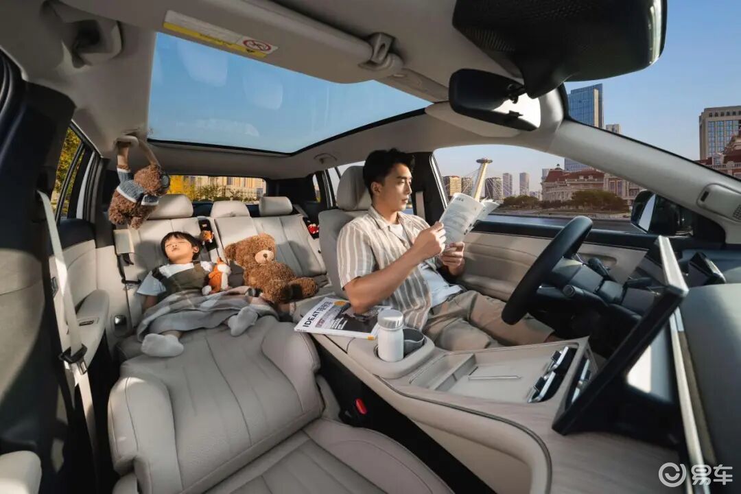 对于家庭用车来说,车内舒适性配置同样用心,前排8点式按摩座椅支持5种模式,配合通风、加热、电调、记忆功能,为驾乘者提供全方位舒适保障。后排座椅靠背角度可实现同级领先的137度放倒,半躺出行更惬意,配合承重10kg的后排小桌板,以及2.26平方米全景天幕加电动遮阳帘等多项舒适配置,为全家出行带来更多精彩。