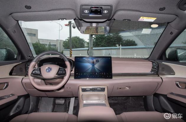 内饰方面,汉DM的座舱布局相对传统,大量软质材料、精致的缝线工艺以及氛围灯的运用,营造出一种稳重且注重质感的豪华氛围。中控区域配备15.6英寸的悬浮式中控屏,仪表则为内嵌式设计。风云A9L则更加偏向“简约科技风”,车内交互界面由15.6英寸悬浮屏和10.25英寸悬浮液晶仪表组成,加上富有格调的内饰配色和较多的镀铬饰条装饰,形成了一种轻奢质感。