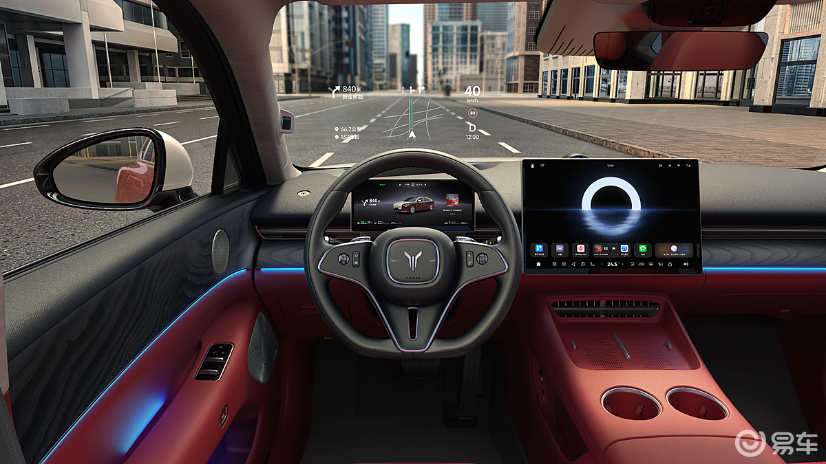 鸿蒙座舱基于高通骁龙8155芯片与5G车联网打造,由16.1英寸3K中控屏、后排8英寸液晶屏与39寸AR-HUD组成多屏交互系统,支持声纹识别、AI语音、可见即可说等多模态交互。