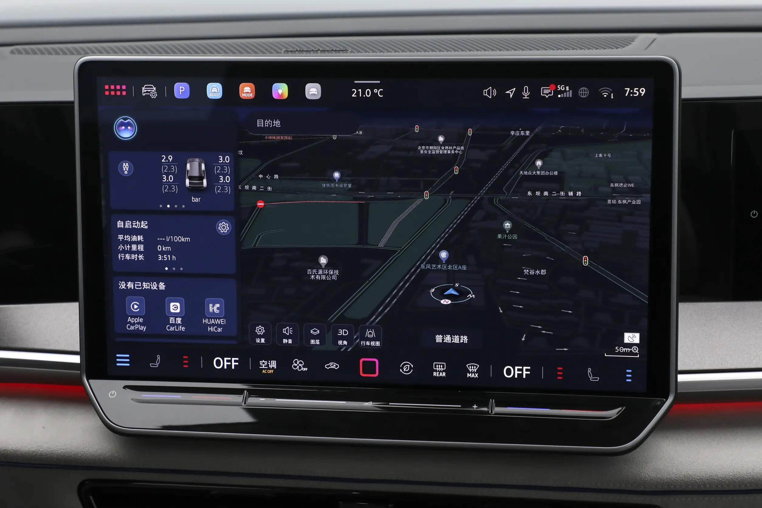 车内也用上了家族最新的三联屏,左右两侧分别为10.25英寸的嵌入式仪表屏、11.6英寸的副驾娱乐屏,15英寸的悬浮式中控屏微微朝向主驾一侧,并将搭载新的车机系统。
