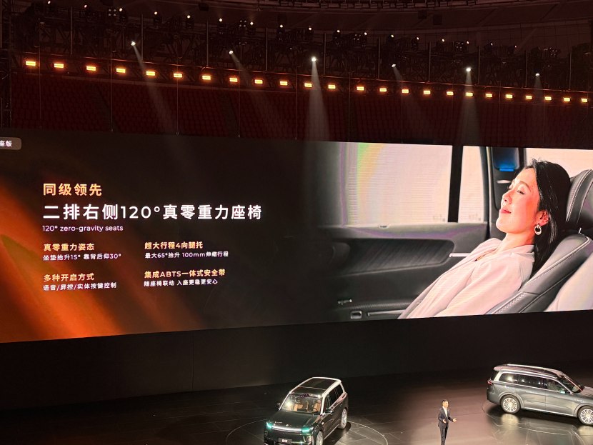 尽管在本次亮相中零跑D99的内饰细节尚未完全公开,但零跑官方已明确了D99在内饰豪华与舒适配置上的核心是打造一个“移动的陆地头等舱”。在材质用料方面,零跑D99将应用百万级豪车同源的半苯胺头层真皮包裹内饰,零重力座椅也将配备,旨在为乘客提供舒适的放松姿态。更为独特的是,零跑D99还搭载了车规级氧舱系统,这一配置旨在提升舱内空气质量,营造更清新舒适的乘坐环境。