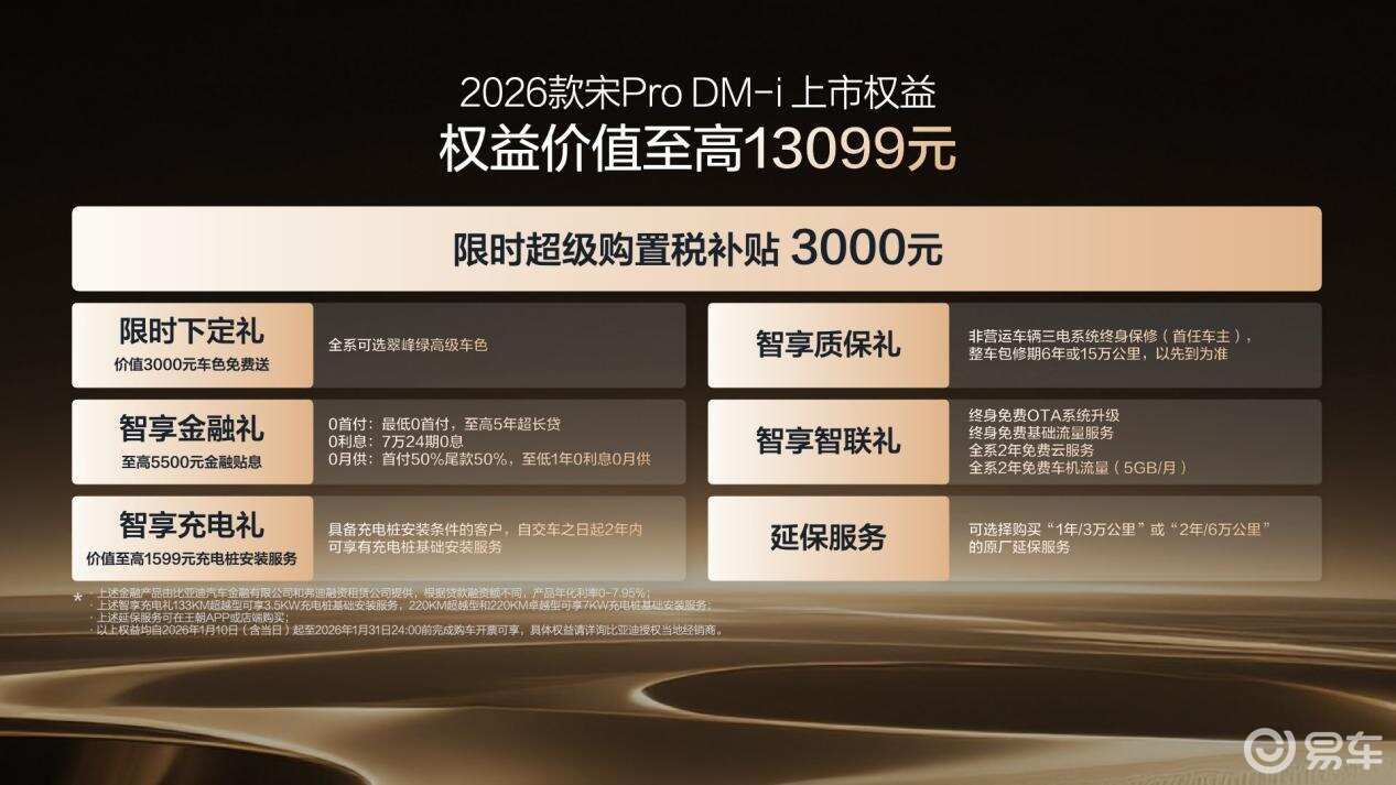 2026年1月10日,比亚迪正式宣布2026款宋Pro DM-i上新220km长续航版本,全系限时超级优享价9.98-12.78万元。