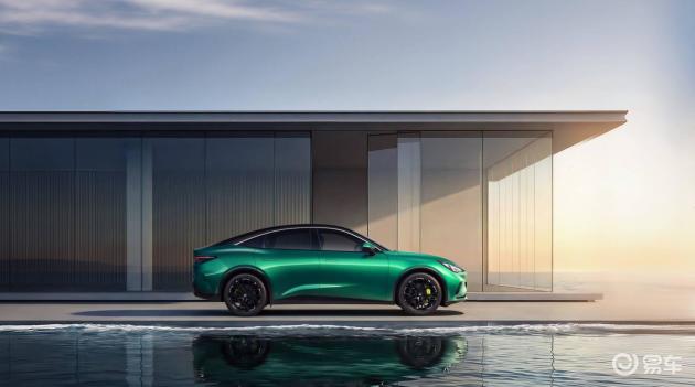 车身侧面,全新极狐阿尔法 S5 延续了流畅动感的线条设计,悬浮式车顶巧妙降低了车身的视觉高度。