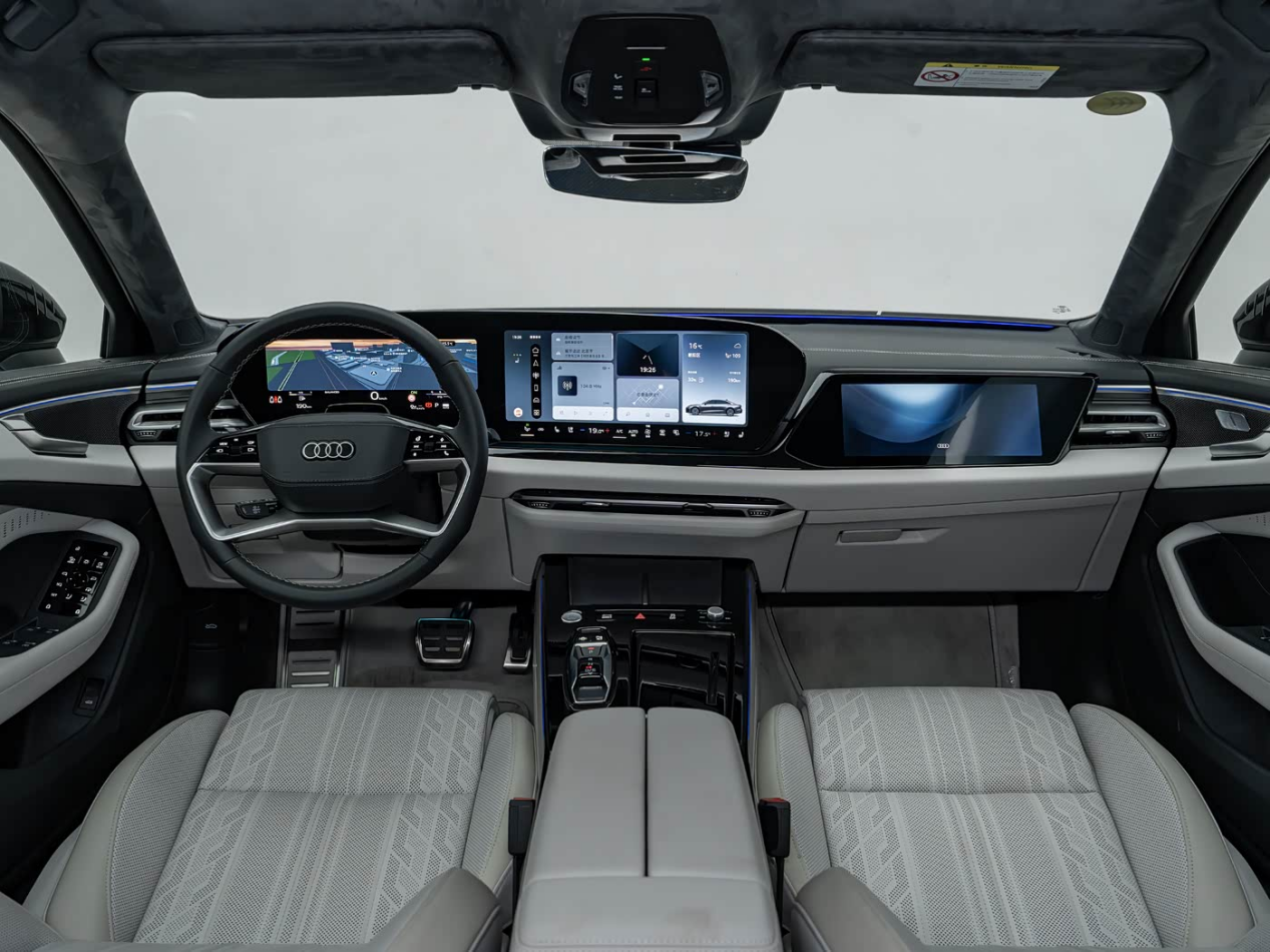 在材质与舒适性配置上,全新奥迪A6L同样向更高层级看齐,3.0T车型采用了Nappa真皮座椅,支持18向电动调节,后排座椅靠背可电动调节至35度,并集成了加热、通风与按摩功能,车顶内衬则采用了同级少有的仿麂皮材质,配合可选装的9分区智能全景天幕与银河星空顶,营造出奢华的乘坐氛围。