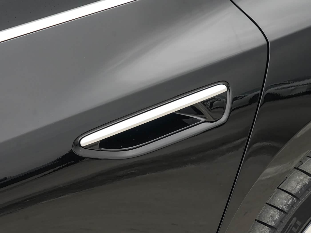 此外,新车还首次引入了半隐藏式电动门把手设计,不仅优化了车身侧面的空气动力学表现,降低了风阻系数,更在细节处体现了机械与电子的融合,而在紧急情况下,门把手会自动弹出红色机械拉绳,兼顾了科技感与安全性。