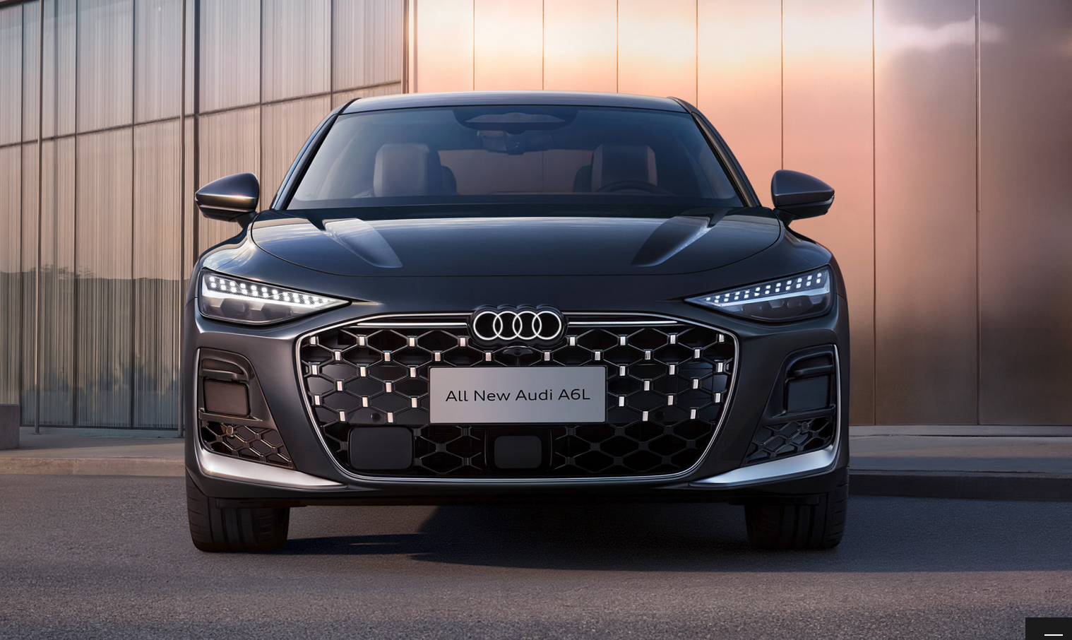 外观方面,全新奥迪A6L实现了从沉稳商务向年轻科技的彻底转型,最大的变化在于采用了双前脸设计策略,以满足不同消费者的审美需求。其中,致雅型延续了豪华格调,采用蜂窝状格栅辅以点阵式镀铬装饰,前包围两侧线条平直,整体更显大气与优雅;而动感型则汲取了赛车运动灵感,通过熏黑处理的六边形大嘴格栅搭配L形饰条,配合类似三角造型的侧进气口以及黑化的外后视镜、侧裙等元素,营造出极具攻击性的运动姿态。