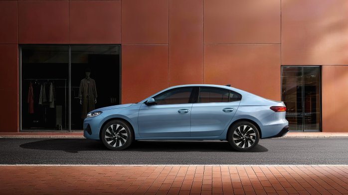 车身尺寸为4702mm×1815mm×1484mm,轴距达2688mm,较速腾L小了一些,侧面采用流畅线条设计,带有轻微溜背造型,配备传统样式门把手及17英寸刀锋轮圈。