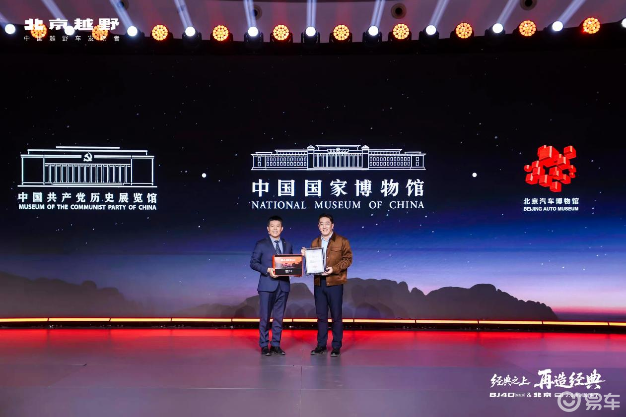 BJ40探险家入馆并入展北京汽车博物馆收藏,将在博物馆里继续讲述中国越野的故事。此前,BJ40增程作为“中国制造‘十四五’成就展”唯一的越野品类展示车,亮相中国国家博物馆;BJ80C阅兵车则被中国共产党历史展览馆荣耀典藏。至此,北京越野成为被“三馆连藏”的车企。