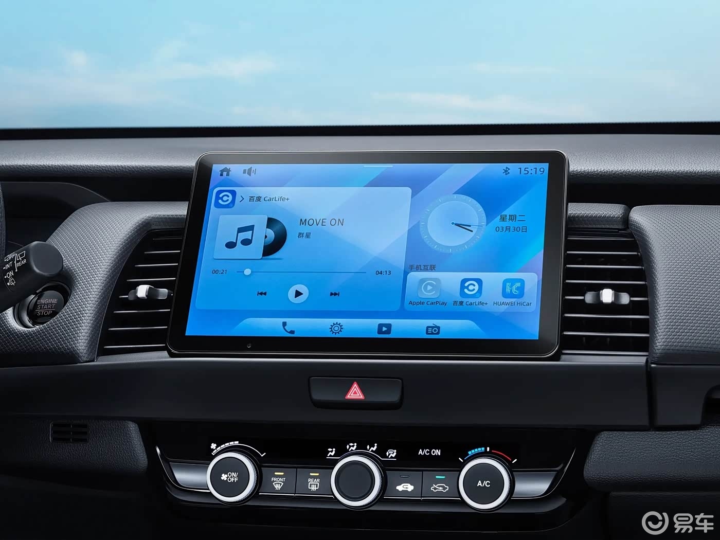 内饰部分,飞度也在与时俱进,7英寸液晶仪表盘+10.1英寸中控屏幕的组合起码看上去不廉价,不过中控屏幕的功能不是很丰富,好在是可以通过CarPlay、CarLife、HUAWEI HiCar连接智能手机来拓展功能。同时全车提供15处储物空间。