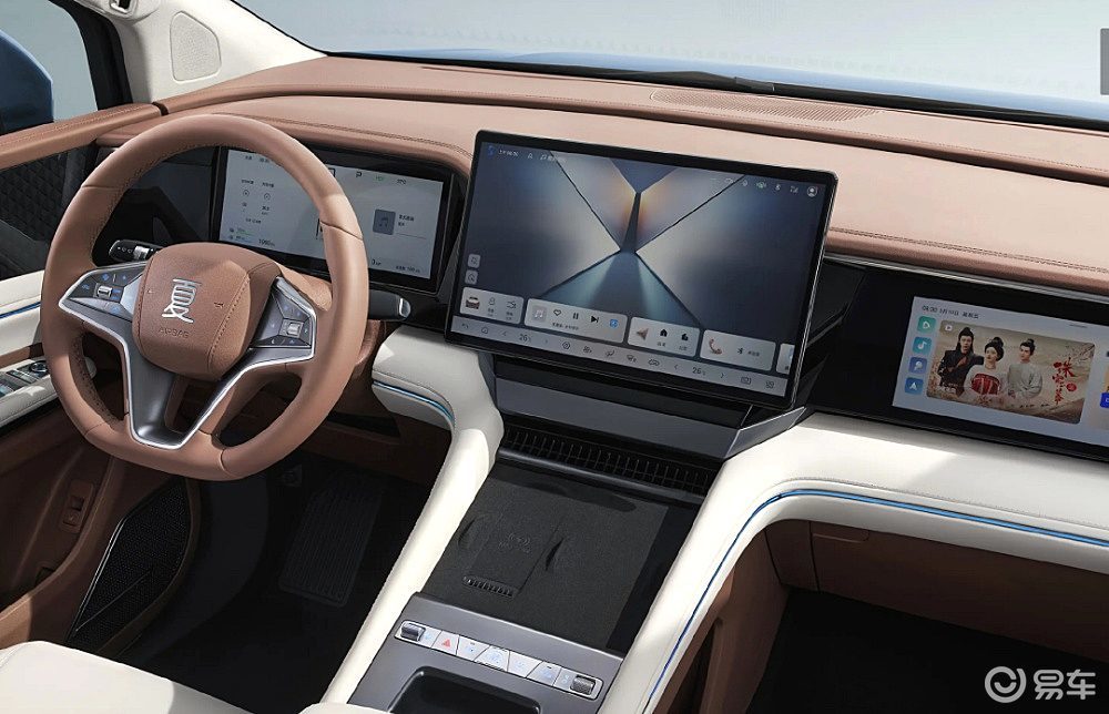 内饰方面,比亚迪夏配备了双辐式方向盘和怀挡式电子换挡机构,中控台搭载12.3英寸全液晶仪表与15.6英寸自适应旋转悬浮Pad。