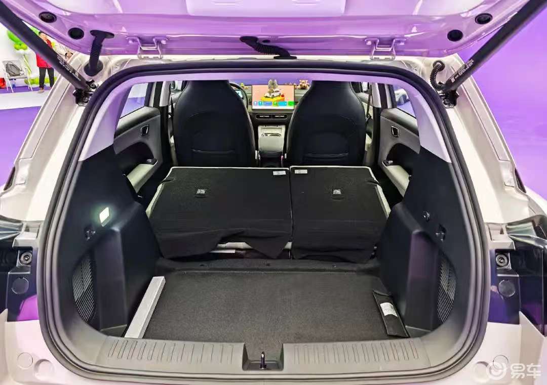奇瑞QQ3EV的前排电动座椅具有加热、通风以及一键舒享功能,得益于2700mm的轴距,后排腿部空间很充足,地板中间是纯平的,坐垫也比较长,能够保障良好的乘坐舒适性,后排座椅放倒后可拓展1450L后备厢空间,此外还设有前备厢。