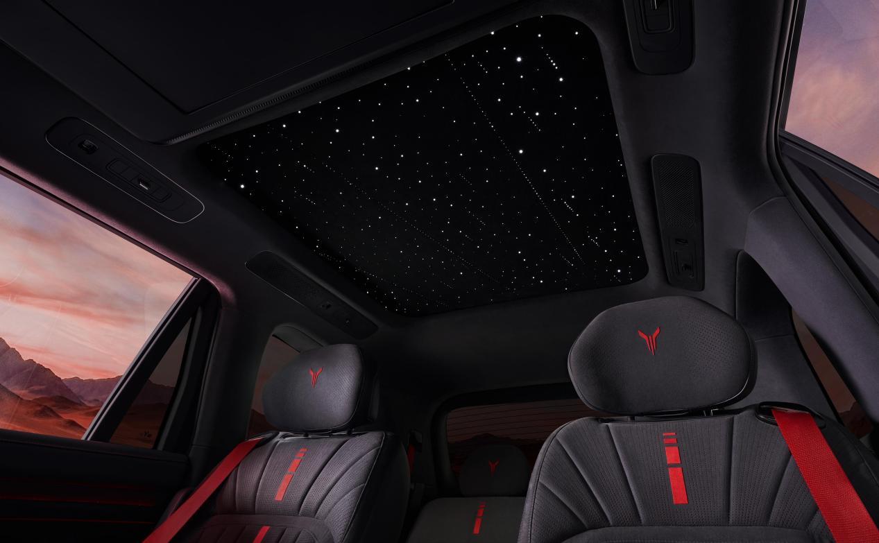 内饰更是把中式韵味拉满,丹墨底色搭配甲胄绗缝座椅,还有朱砂红线点睛,流云墨韵饰板和星河天幕星空顶,质感和氛围感都很到位。整体风格低调不浮夸,越品越高级,很符合高端用户想要的沉稳、有内涵的气质。
