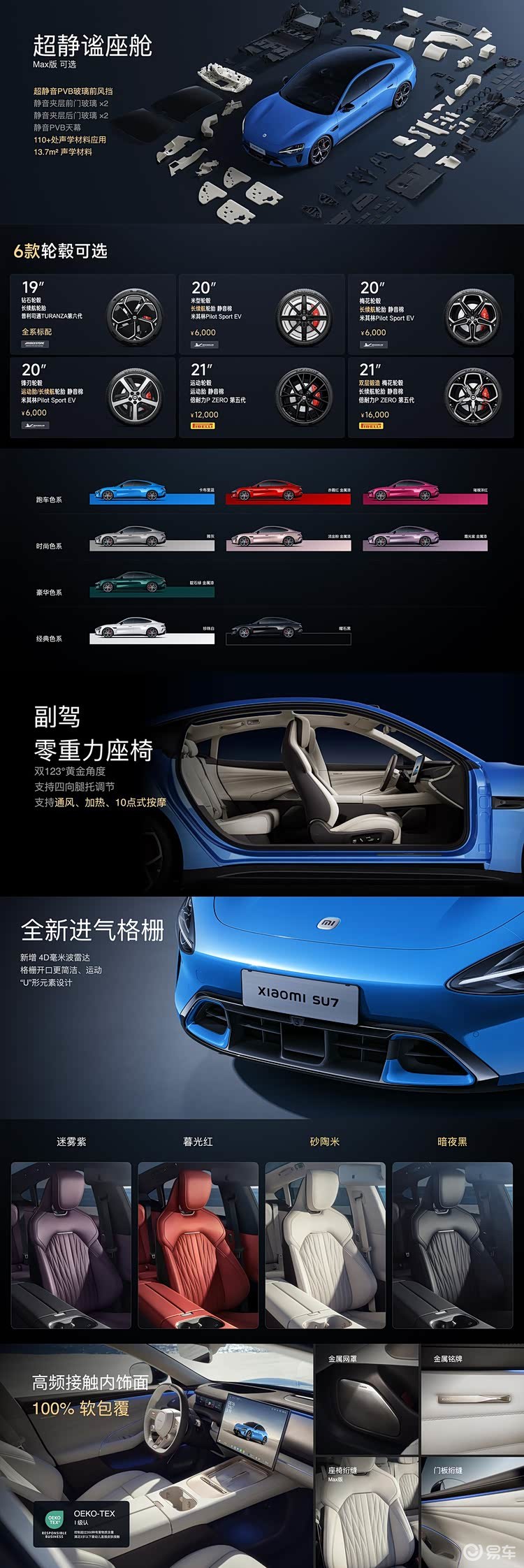 安全是所有体验的基石。新一代SU7在被动安全上毫不妥协,全系标配2200MPa小米超强钢(应用于A柱至C柱的内嵌式防撞梁及四门防撞梁),高强度钢与铝合金占比达90.3%,并标配9安全气囊。其电池包通过了远超国标的热失控安全测试(55℃满电状态下单电芯热失控不起火),并拥有ASIL-D最高功能安全等级。